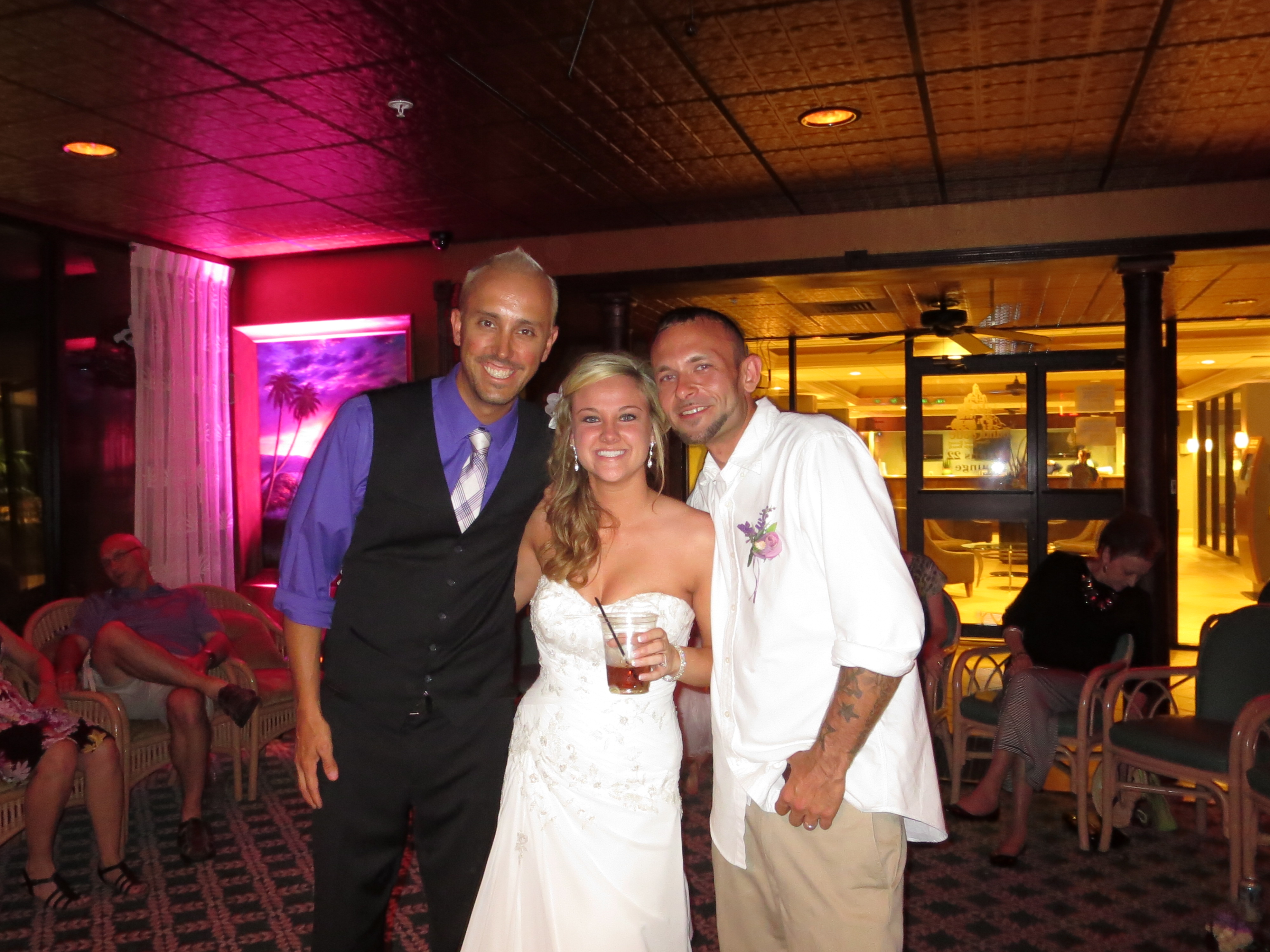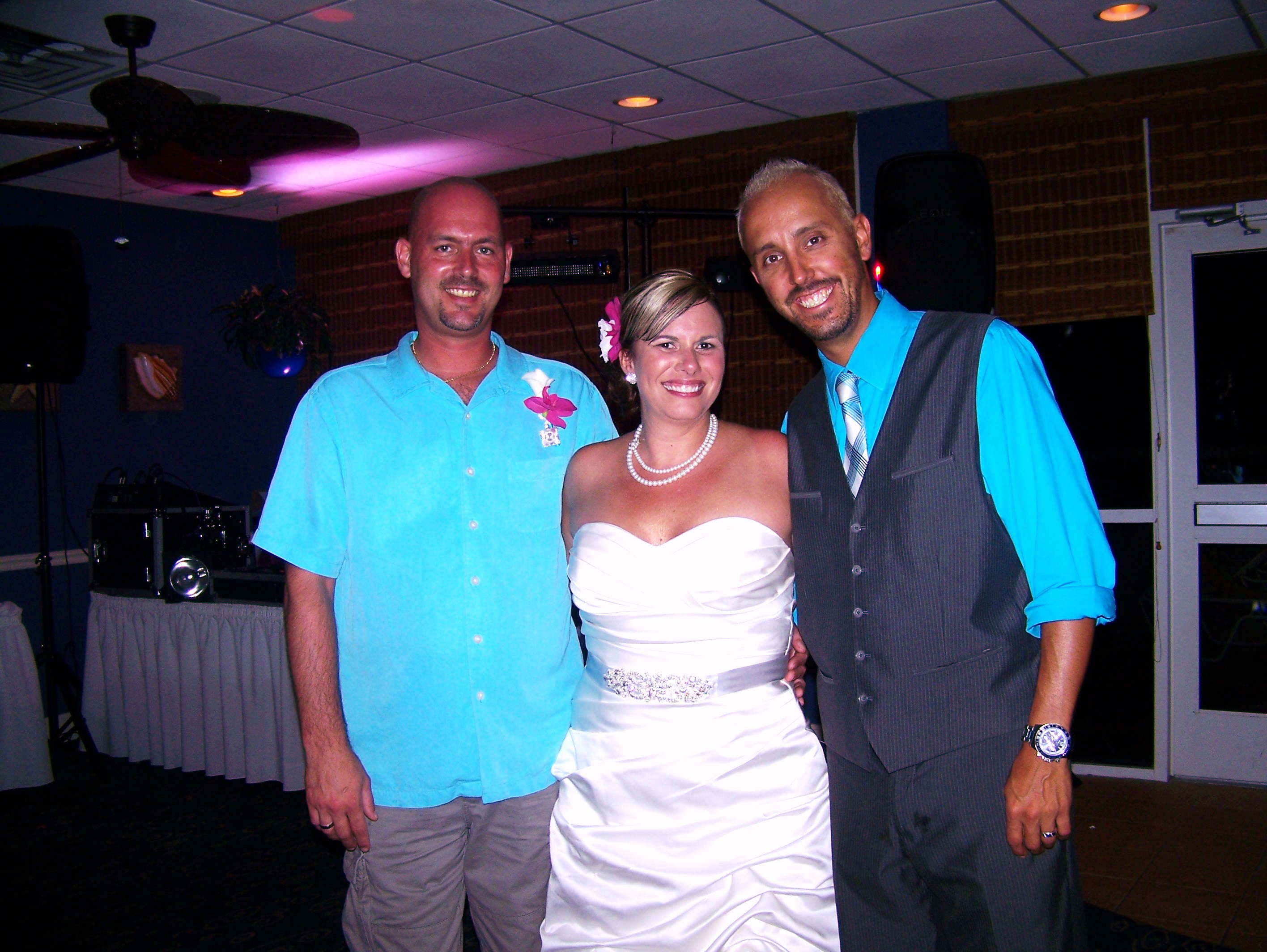 WHEN WE ASKED JAKE TO BE OUR ENTERTAINMENT FOR OUR TO HIS KARAOKE SHOWS BUT NEVER HEARD HIS EMCEE OR DJ'ING AND READ SOME REVIEWS THAT PEOPLE WHO HAD USED HIM PREVIOUSLY HAD WRITTEN, AND IN MY OPINION THEY DIDN'T DO HIM ENOUGH JUSTICE, HE WAS AMAZING, THE MUSIC THAT I WANTED WAS VERY DIFFERENT FROM THE NORMAL WEDDING, BECAUSE WE HAD AN OUTDOOR BEACH WEDDING AND IT WAS PERFECT, HE DIDN'T MISS ANYTHING, AND MADE SURE THINGS WERE BEYOND PERFECT. JAKE REALLY WANT ABOVE & BEYOND WHILE WORKING WITH ME PRIOR AND DURING THE WEDDING. I WOULDN'T CHANGE A THING ABOUT THAT DAY!!! ABSOLUTELY NO COMPLAINTS. DURING THE RECEPTION JAKE AND KYLE DID WHAT THEY DO BEST, ENTERTAINING THE CROWD AND REALLY MAKING EVERYONE COMFORTABLE, AND WHEN I LOOKED AROUND AND SAW EVERYONE LAUGHING AND HAVING A GREAT TIME, I WAS SO HAPPY. THEY WERE FUNNY, FRIENDLY, AND ABSOLUTELY SUPERB, I WOULD RECOMMEND THEM TO ANYONE!! I'LL NEVER FORGET THIS AMAZING DAY, WE ARE SO THANKFUL THEY SHARED IT WITH US AND HELPED MAKE IT SO PERFECT,THANK YOU !!! BRYAN & HEATHER BIRD BREAKERS INN, MARCH 21ST ,2009 |